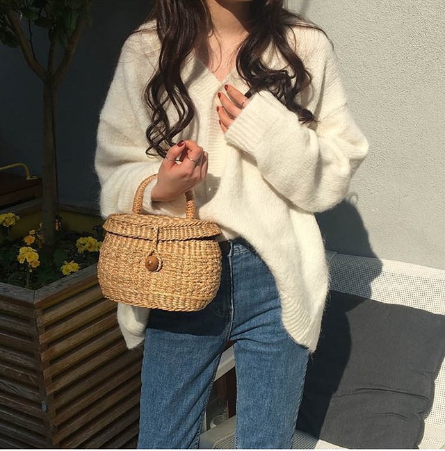 2カラー オルチャン 大人かわいい フェミニン Vカットナチュラルニット