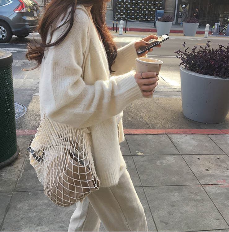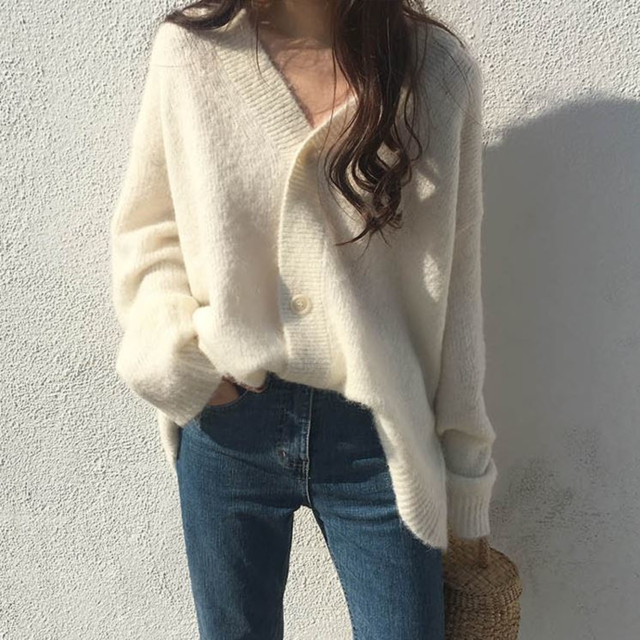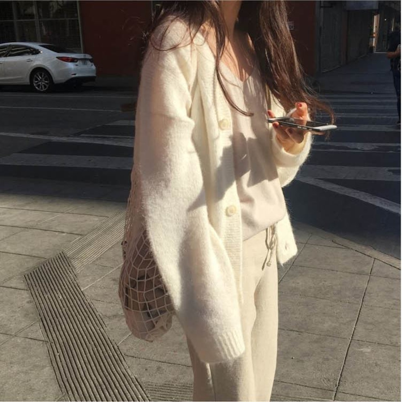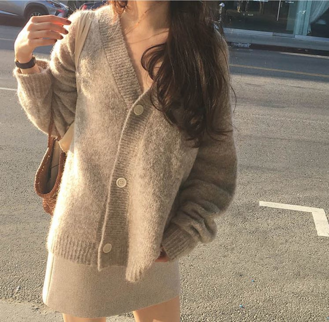 ゆるふわニット カーディガン Vネック 2color オーバーサイズ 大人カジュアル アラフォー
