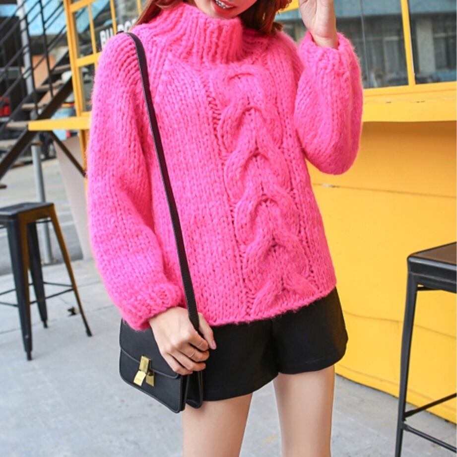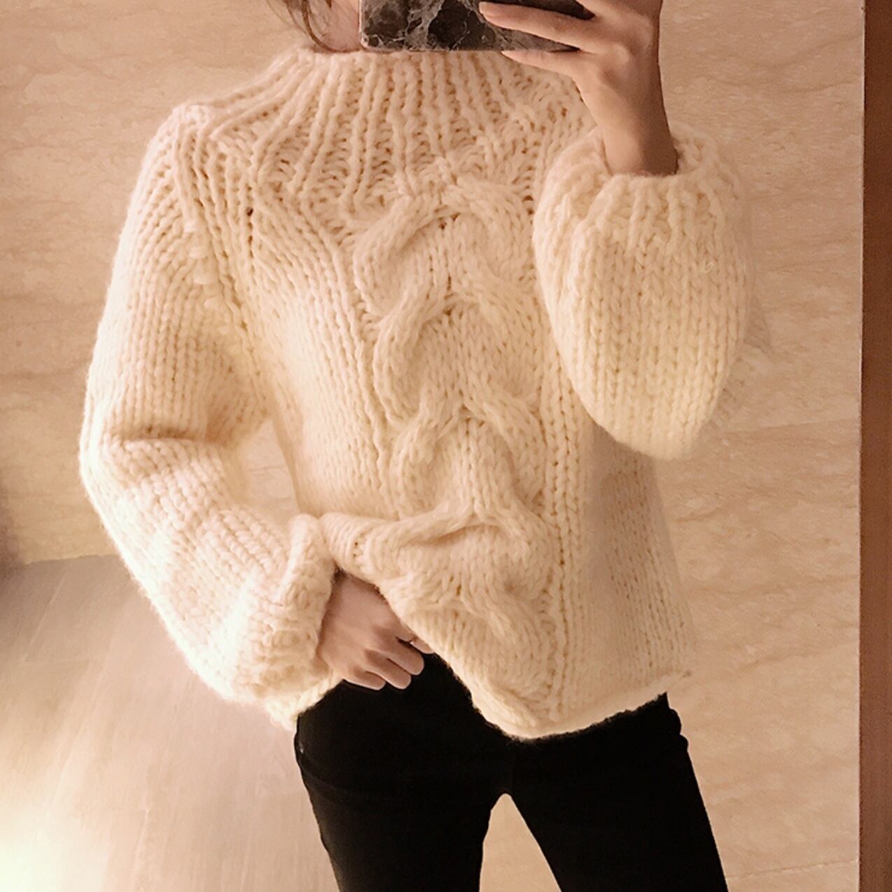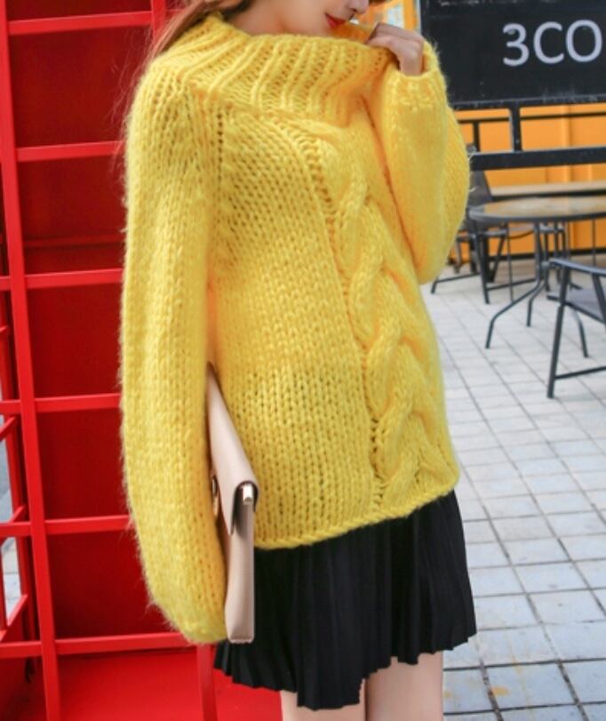 タートルネック ケーブルニット ウール ハンドメイド 長袖 カラーニット 体型カバー 韓国 アラフォー