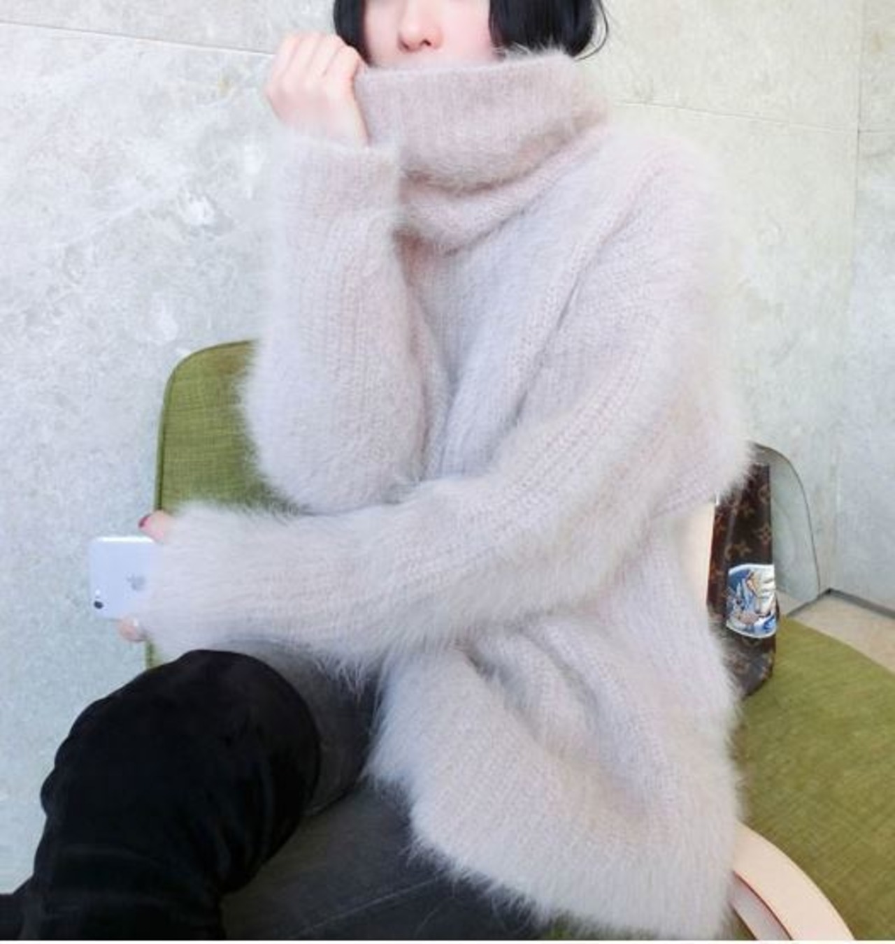 ハイネック シャギー ニット モヘア タートルネック セーター レディース トップス ゆったり デート フェミニン 大人カジュアル 3color アラフォー