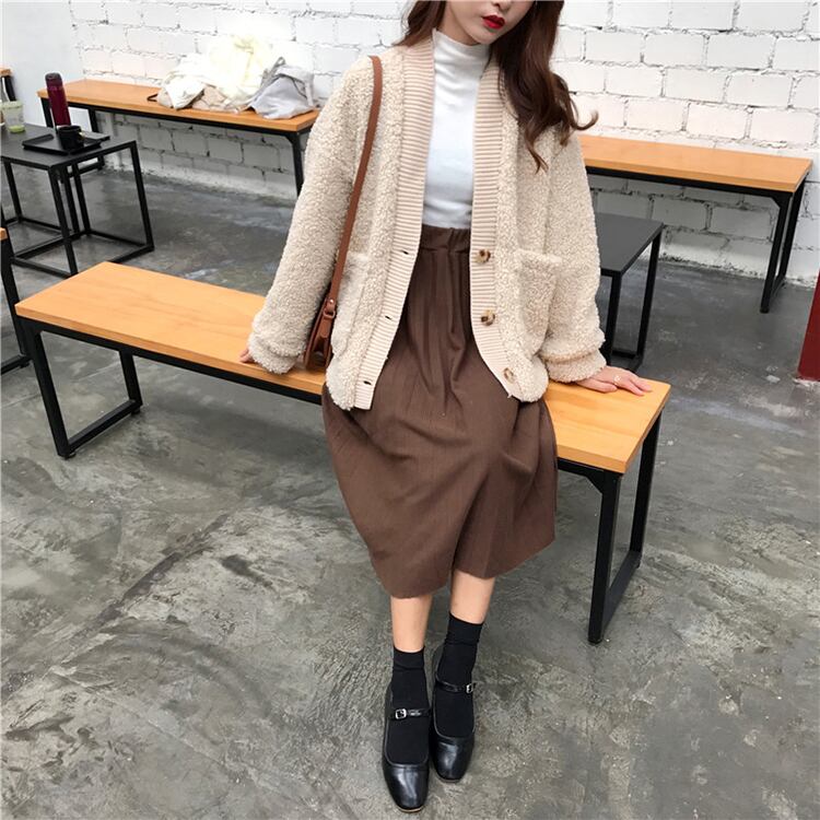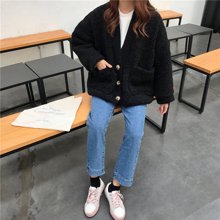 ボア もこもこ Vネック カーディガン レディース アウター 韓国 デート お出かけ オルチャン